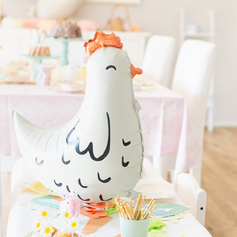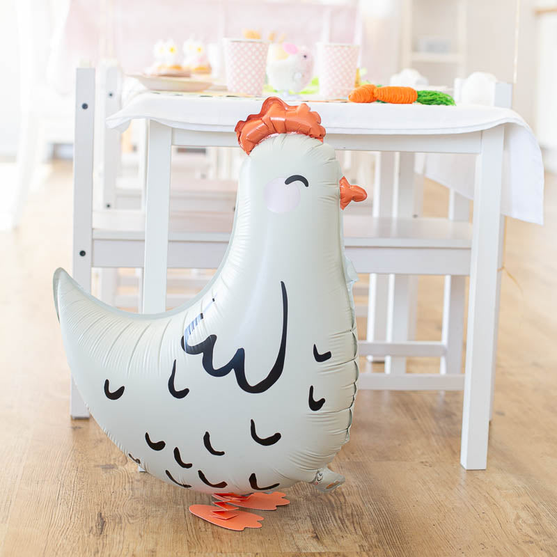 Niedliche Henne als Ballon für den Bauernhof Kindergeburtstag