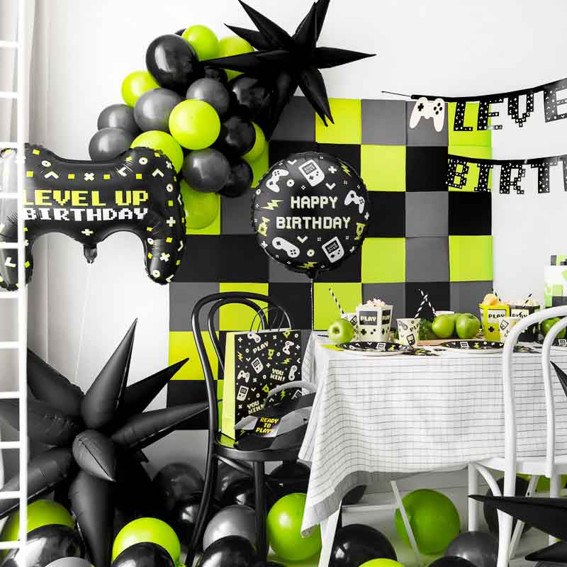 Schwarzer Folienballon für die Gaming Deko zum Geburtstag.