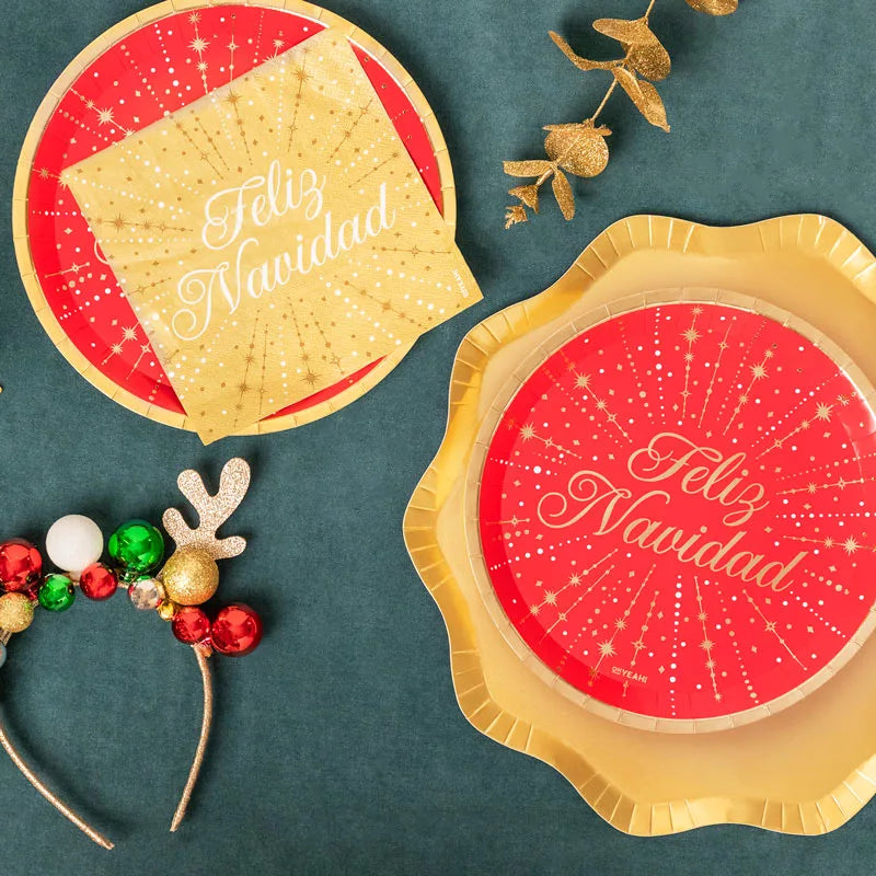 Große Teller in Gold-Metallic mit Wellenrand als Hingucker auf dem Party Tisch.