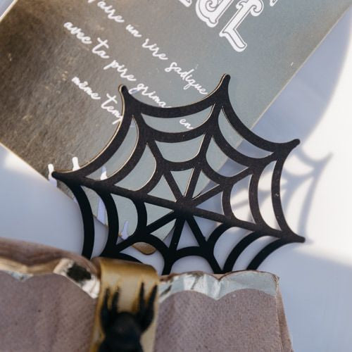 Filigrane Papierdeko in Schwarz passend zum Spinnen-Motto.