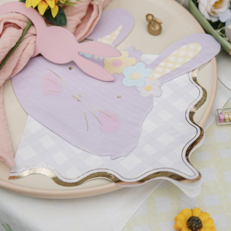 Mit diesen hübschen Servietten in mit Schachbrettmuster hellem Rosa, Lila, Grün und Gelb mit Wellenrand in Gold-Metallic wird der Geburtstagstisch garantiert zum Hingucker.