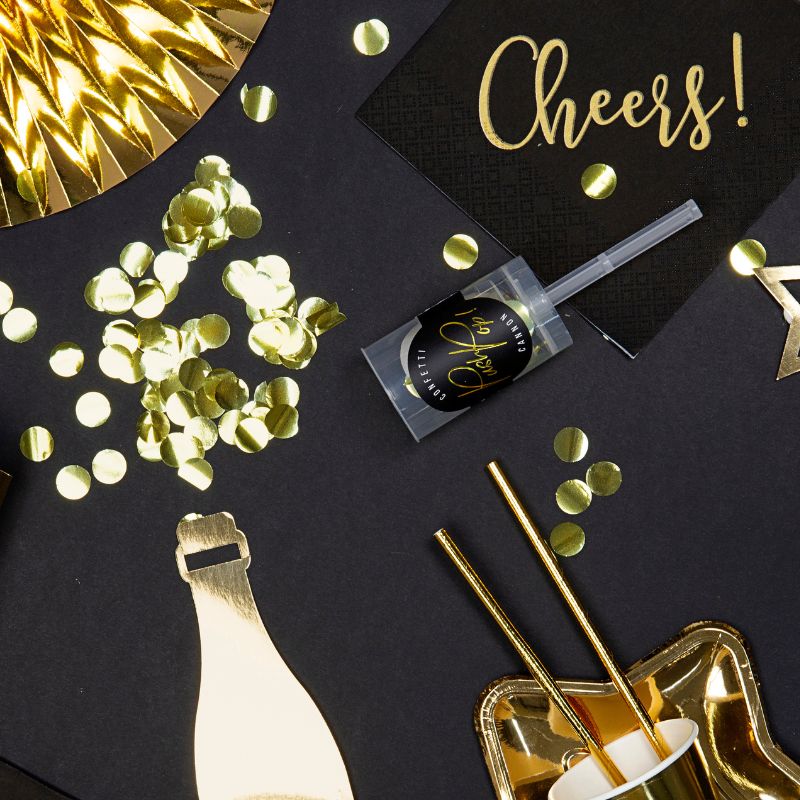 1 Kunststoffverpackung mit Konfetti zum Rausdrücken.