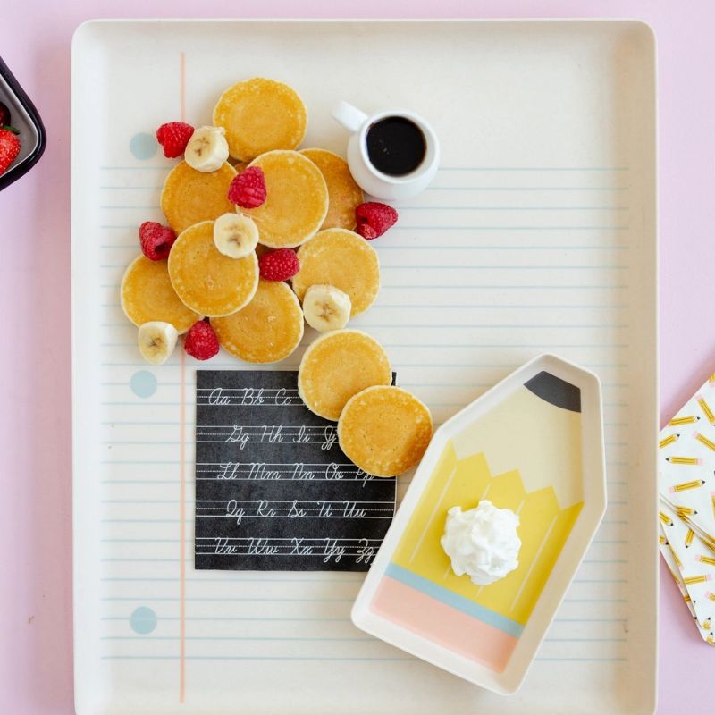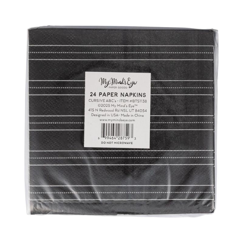 24 schwarze Servietten im Tafel-Look mit weißen Kreide-Buchstaben zum ersten Schultag.
