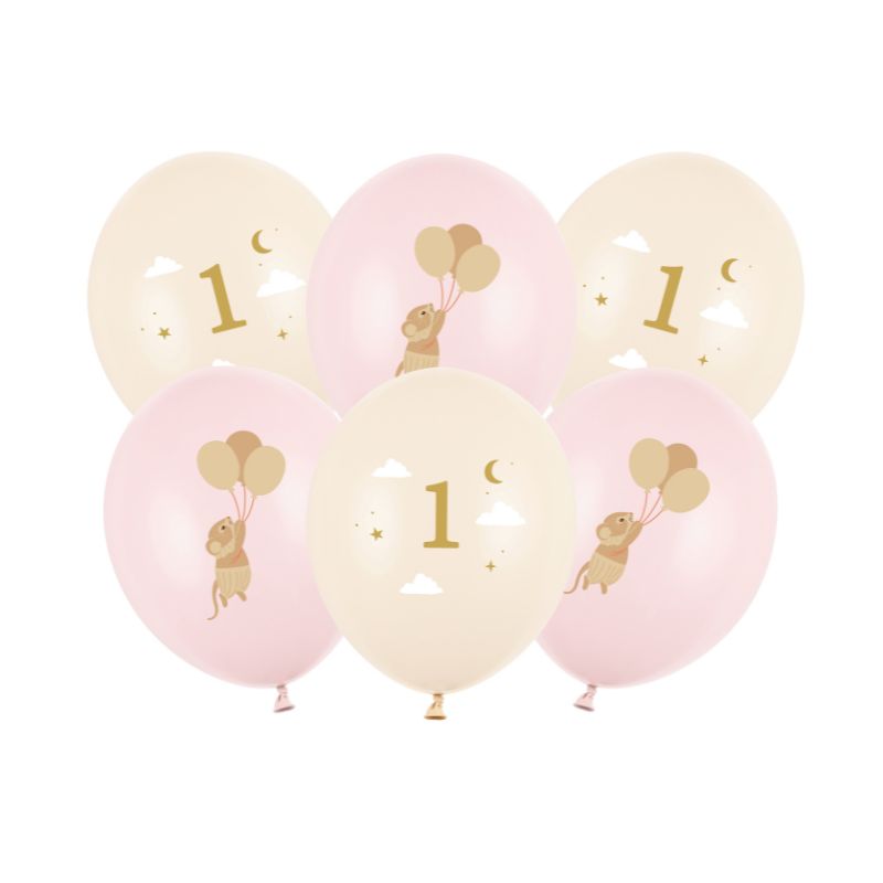 6 Ballons mit niedlichem Mäuse-Motiv für den ersten Kindergeburtstag