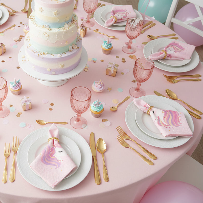 Rosa Servietten mit Einhorn-Motiv für den Kindergeburtstag