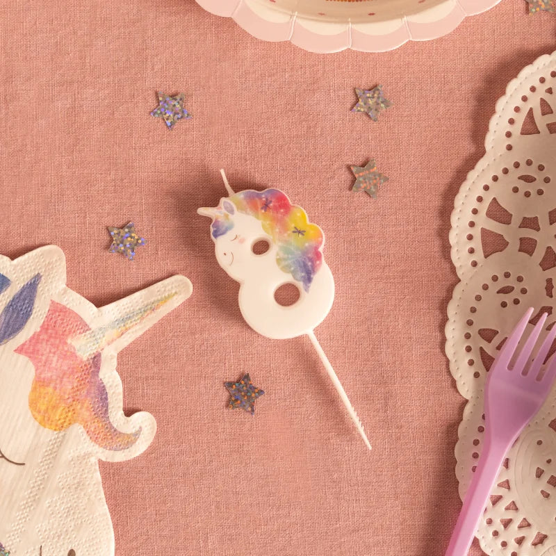 Zahlenkerze mit Einhorn-Motiv für den Geburtstagskuchen