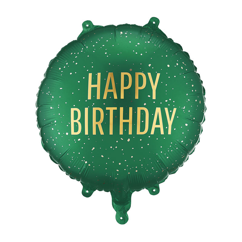 Mit diesem Folienballon in dunklem Grün mit Happy Birthday Schriftzug in Gold-Metallic machst du die Partydekoration perfekt!