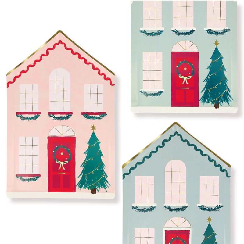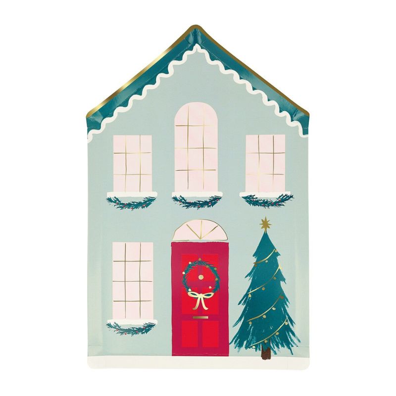Mit diesen Tellern mit weihnachtlichem geschmücktem Haus wird die Kuchentafel garantiert zum Hingucker.