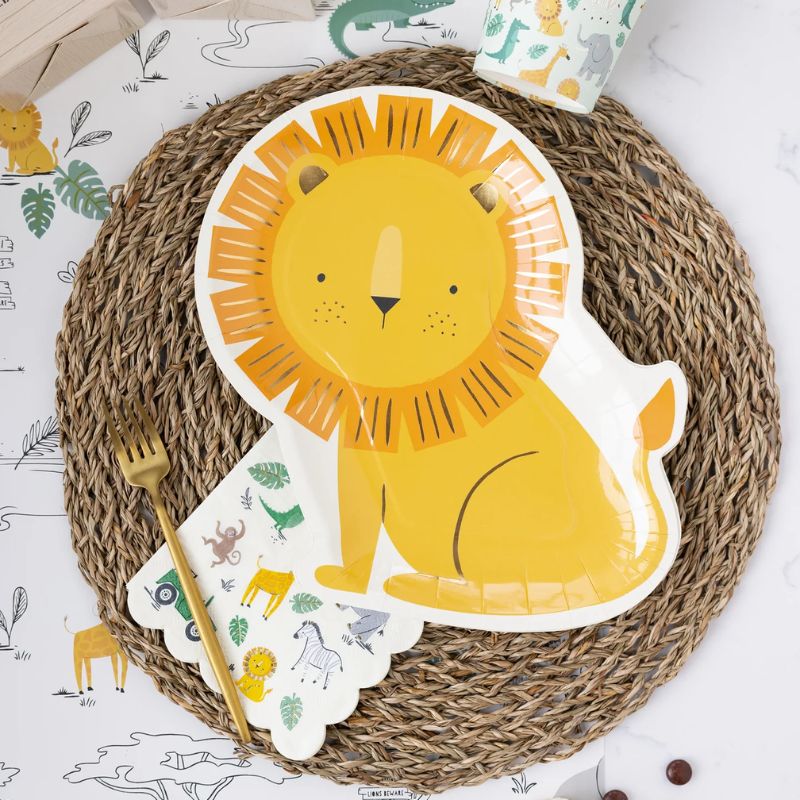 Diese Pappteller in Form eines niedlichen Löwen sind ein toller Hingucker auf dem Safari-Kindergeburtstag.