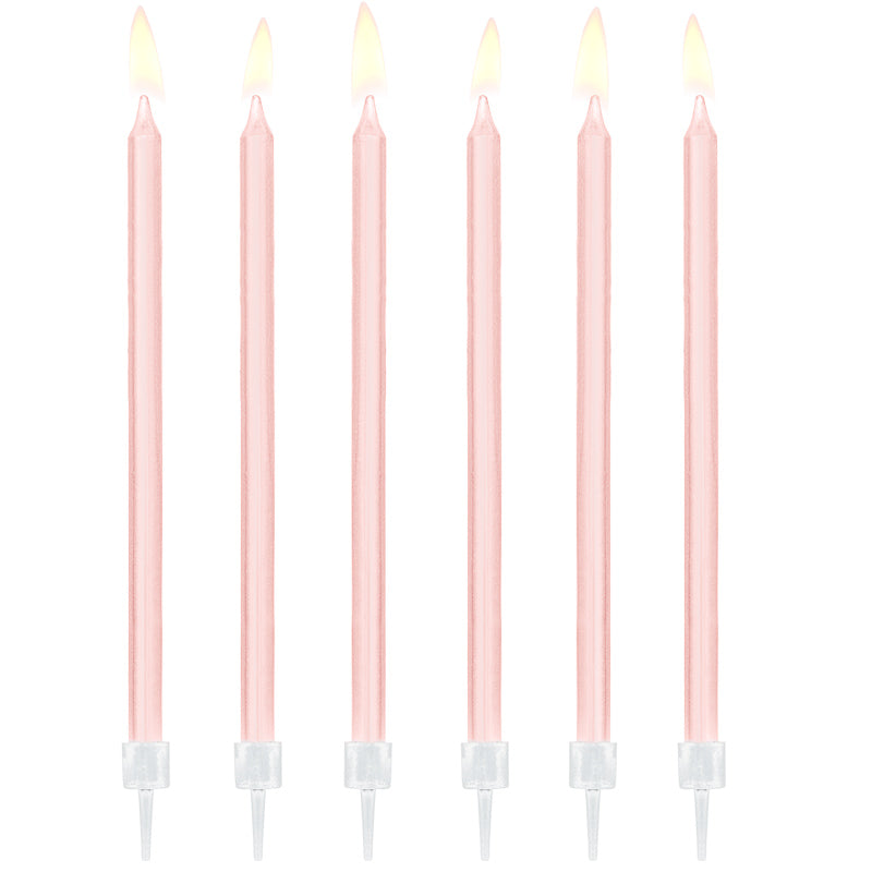 Moderne, schmale Kuchen-Kerzen in zartem Rosa.