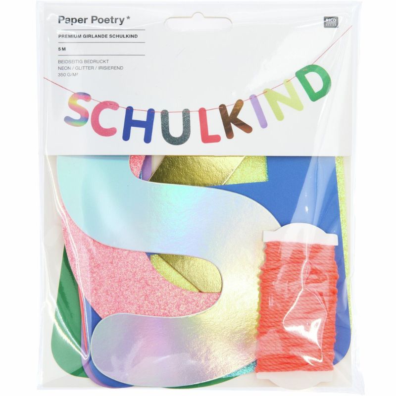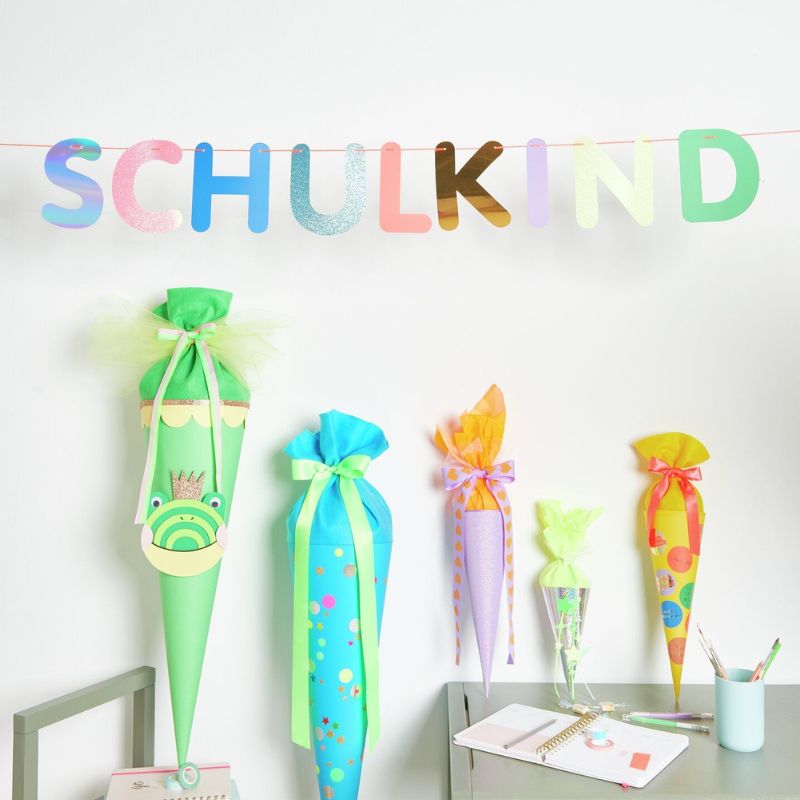Farbenfrohe Schulkind Girlande zum Schulstart